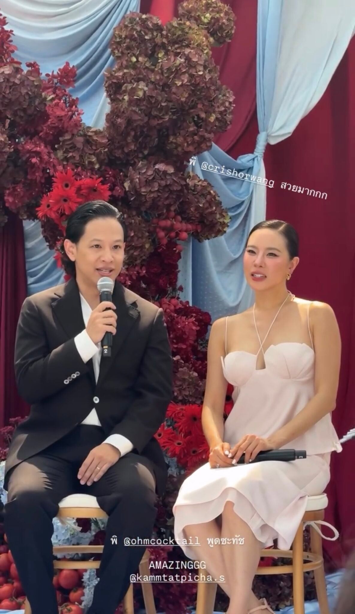 นอกจากนี้ โอมยังยืนยันว่าความสัมพันธ์กับสาวคริสนั้นสนิทสนมกันมาก หลังจบงานยังมีการพูดคุยเล่นกันต่อหลังไมค์ตามปกติ พร้อมเผยความลับสุดฮาว่า ทั้งคู่ต่างเกร็งกันมากเพราะต้องมารับหน้าที่ “เถ้าแก่จำเป็น” แบบงงๆ ทั้งสองฝั่ง เลยทำให้จังหวะการรับส่งมุกอาจจะดูขึงขังจนคนดูคิดไปไกล