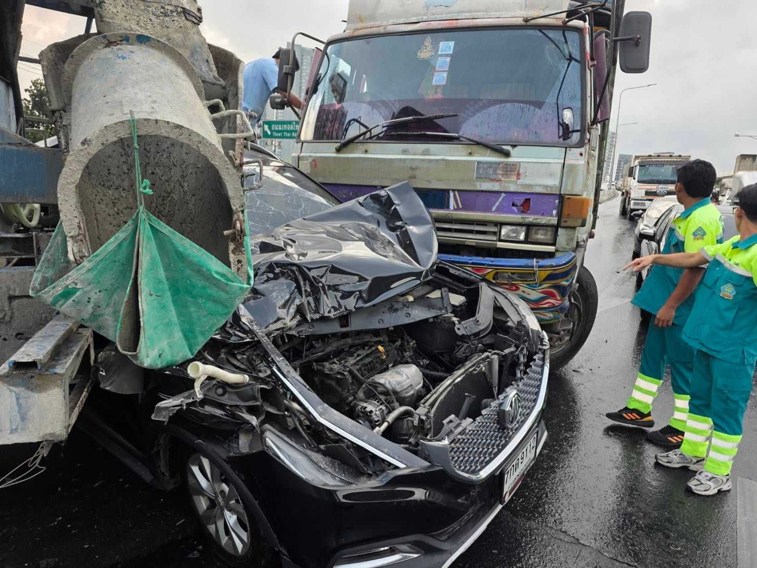 เมื่อเวลา 09.00 น. วันที่ 24 เม.ย. ผู้สื่อข่าวรายงานว่า เกิดอุบัติเหตุรถบรรทุกสิบล้อเฉี่ยวชนกันหลายคัน บริเวณถนนราชพฤกษ์ ช่วงบางหว้า ก่อนลงถนนเพชรเกษม แขวงปากคลองภาษีเจริญ เขตภาษีเจริญ กทม.