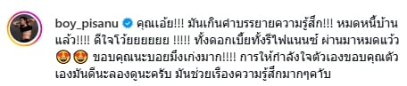 นอกจากนี้ หนุ่มบอยได้บรรยายความรู้สึกผ่านแคปชั่นว่า “คุณเอ้ย!!! มันเกินคำบรรยายความรู้สึก!!! หมดหนี้บ้านแล้ว!!!! ดีใจโว้ย!!!!! ทั้งดอกเบี้ยทั้งรีไฟแนนซ์ ผ่านมาหมดแว้ว ขอบคุณนะบอยXงเก่งมาก!!!! การให้กำลังใจตัวเอง ขอบคุณตัวเองมันดีนะลองดูนะครับ มันช่วยเรื่อความรู้สึกมากๆ ครับ”
