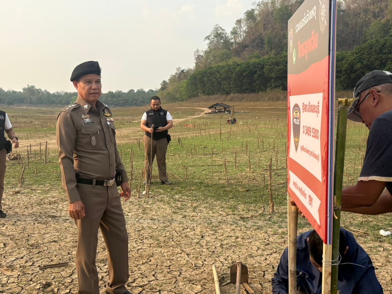 เมื่อวันที่ 24 เม.ย. พล.ต.ต.พศวีร์ เรืองภู่ ผบก.ภ.จว.กาญจนบุรี พ.ต.อ.สันติ พิทักษ์สกุล ผกก.สภ.สังขละบุรี พ.อ.ปิยะเณศร์ ภัทรศาศวัตวงษ์ รอง ผบ.ฉก.ลาดหญ้า จึงเล็งเห็นความสำคัญได้จัดทำป้ายรวมเบอร์แจ้งเหตุโทรฯ ฉุกเฉิน สภ.สังขละบุรี 0-3459-5300 หรือสายด่วน 191 โครงการให้มีการเพิ่มจุดตรวจท่องเที่ยว 007 ในระบบ police 4.0 เพื่อให้ตำรวจสายตรวจและสายสืบได้มาตรวจตราตามวงรอบ ครั้งนี้มาติดป้ายบริการนักท่องเที่ยว บริเวณอดีตสถานีรถไฟบ้านนิเถะ เพื่อป้องกันเหตุร้ายที่ไม่คาดคิด สร้างความอบอุ่นใจในชีวิตและทรัพย์สินของนักท่องเที่ยวที่เข้ามาท่องเที่ยวเชิงประวัติศาสตร์ในครั้งนี้
