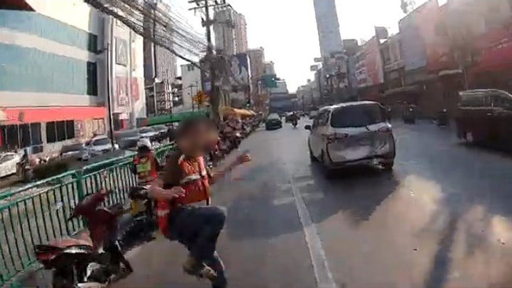 เมื่อวันที่ 24 เม.ย. 69 นายภูกิจ ฉัตชนกรโภคกุล อายุ 28 ปี ชาวอำเภอวังน้ำเขียว จังหวัดนครราชสีมา แจ้งความ พ.ต.ต.พนม จอมคำสิงห์ สว.(สอบสวน) สน.พระโขนง หลังถูกชายขี่วินจักรยานยนต์รับจ้าง ก่อเหตุด่าทอ และกระโดดถีบใส่รถ ระหว่างขับขี่มาตามถนนอ่อนนุช มุ่งหน้าถนนสุขุมวิท แขวงพระโขนงเหนือ เขตวัฒนา กรุงเทพมหานคร