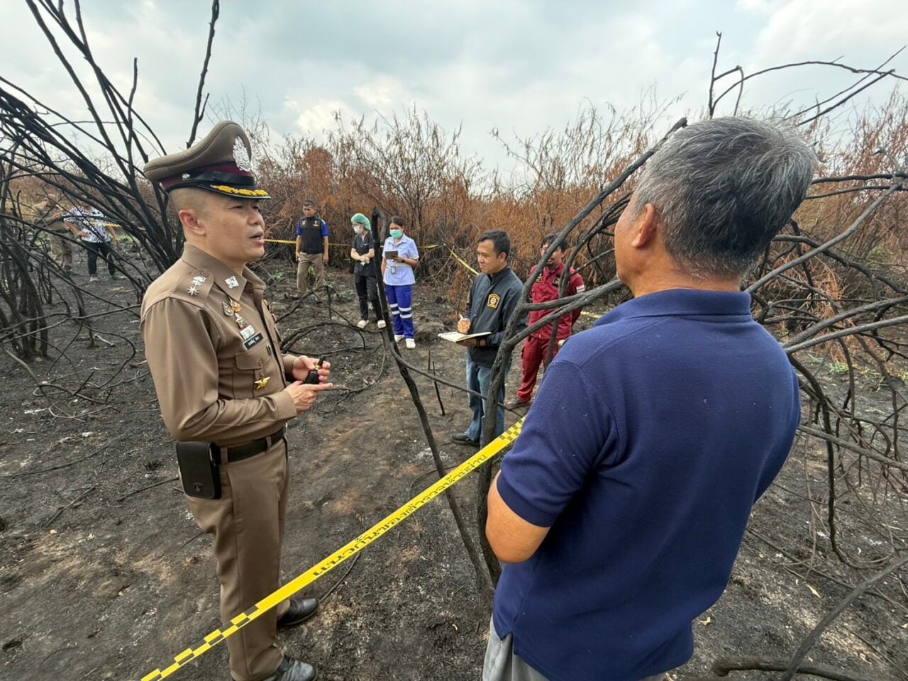 จากการสอบถามชาวบ้านทราบว่า คนงานที่เข้ามาหาปลาเป็นผู้พบโครงกระดูก ก่อนแจ้งผู้เกี่ยวข้องเข้าตรวจสอบ โดยระบุว่า หากไม่เกิดเหตุไฟไหม้ ป่าบริเวณนี้จะรกทึบจนไม่สามารถเข้าถึงได้ อีกทั้งในพื้นที่เคยมีชายสูงอายุอายุกว่า 80 ปี หายตัวไปเมื่อประมาณ 3 ปีก่อน