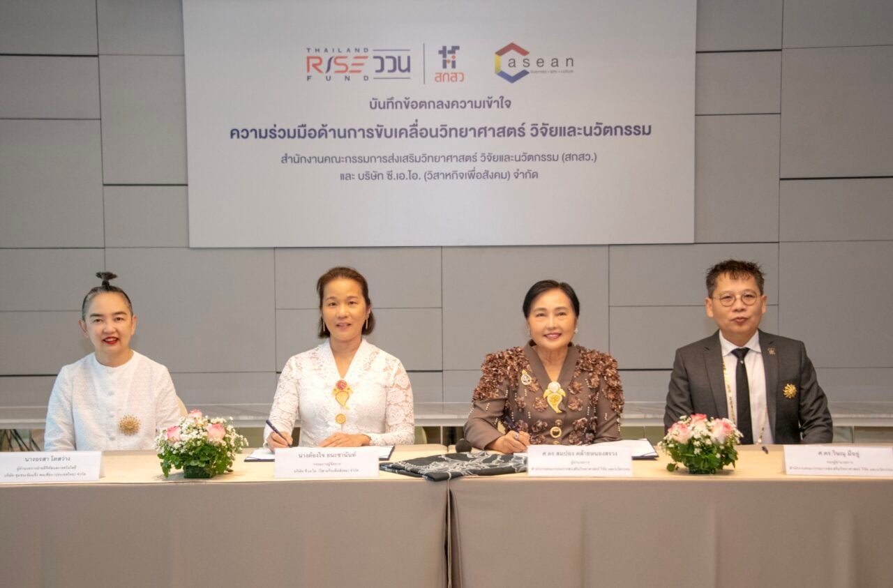 เมื่อวันที่ 24 เมษายน 2569 สกสว. ได้ลงนามบันทึกข้อตกลงความเข้าใจ (MOU) ร่วมกับ บริษัท ซี.เอ.ไอ. (วิสาหกิจเพื่อสังคม) จำกัด (C asean) ว่าด้วยความร่วมมือด้านการขับเคลื่อนวิทยาศาสตร์ วิจัยและนวัตกรรม ณ สำนักงาน C asean อาคารไทยเบฟ ควอเตอร์ กรุงเทพมหานคร เพื่อขยายบทบาทของกองทุน ววน. จากการสนับสนุนงานวิจัย ไปสู่การ “แปลงองค์ความรู้เป็นมูลค่าทางเศรษฐกิจ” ผ่านความร่วมมือกับภาคเอกชนที่มีศักยภาพระดับสากล