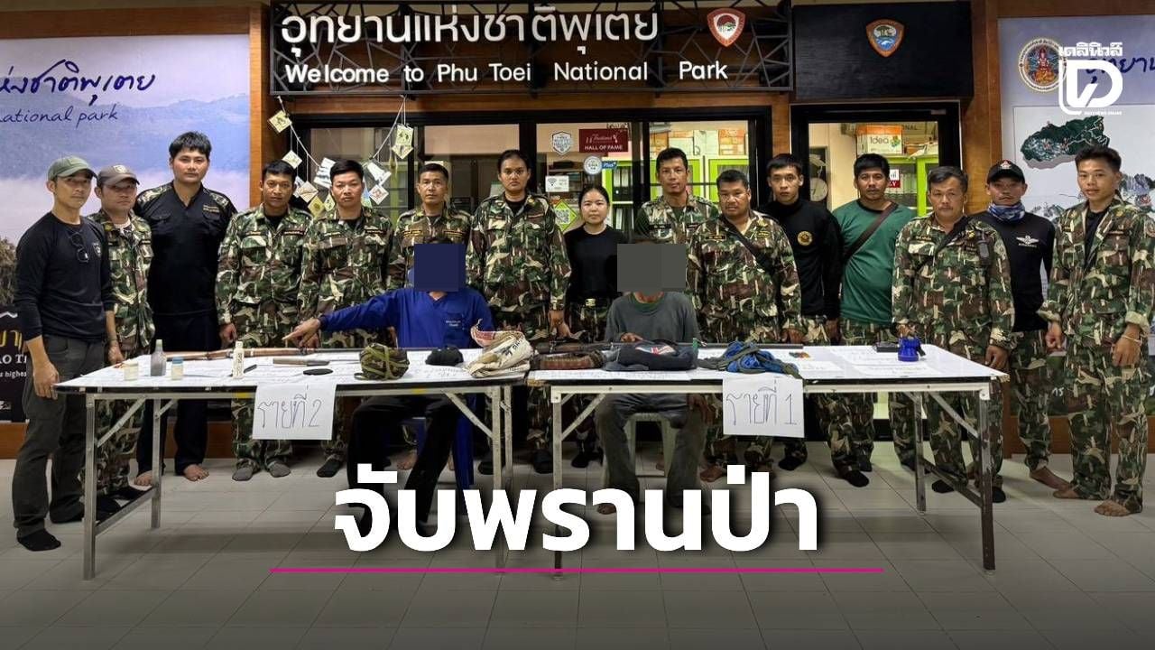 เมื่อวันที่ 25 เม.ย. น.ส.สาวิตรี เชื้อพงษ์ หัวหน้าอุทยานแห่งชาติพุเตย ได้รับรายงานจาก นายสุชิน งามยิ่ง พนักงานราชการตำแหน่งพนักงานพิทักษ์ป่า ขณะออกตรวจในเขตอุทยานแห่งชาติพุเตย บริเวณป่าเขาตู่ตี่ ต.ห้วยขมิ้น อ.ด่านช้าง จ.สุพรรณบุรี พบรถจักรยานยนต์ต้องสงสัยจอดอยู่ 2 คัน และได้ยินเสียงกลุ่มบุคคลรวม 3 คน พร้อมสังเกตเห็นว่ามีอาวุธปืนทุกคน เจ้าหน้าที่จึงแสดงตัวเข้าจับกุม แต่กลุ่มผู้ต้องหากระจายกันหลบหนี