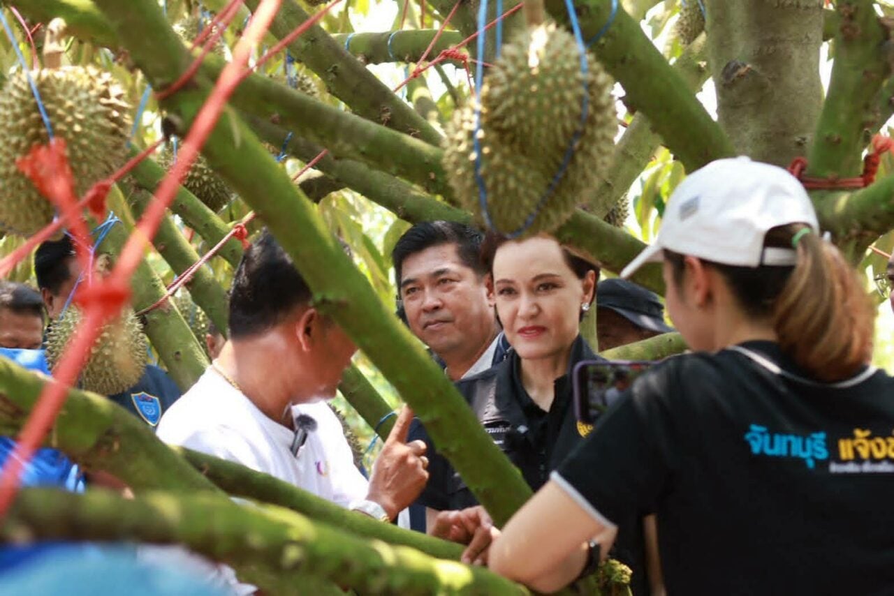 เมื่อวันที่ 25 เม.ย. นางศุภจี สุธรรมพันธุ์ รองนายกรัฐมนตรีและรัฐมนตรีว่าการกระทรวงพาณิชย์ นำคณะผู้บริหารลงพื้นที่จังหวัดจันทบุรี เพื่อติดตามสถานการณ์การผลิตและการส่งออกทุเรียนไทยอย่างใกล้ชิด ชูโมเดล “สวนทุเรียนร้อยล้าน” และนวัตกรรมแปรรูปเพิ่มมูลค่า พร้อมเร่งแก้ปมโลจิสติกส์ไทย-จีน เตรียมพร้อมรับมือผลผลิตทะลักช่วงครึ่งฤดูกาลหลัง