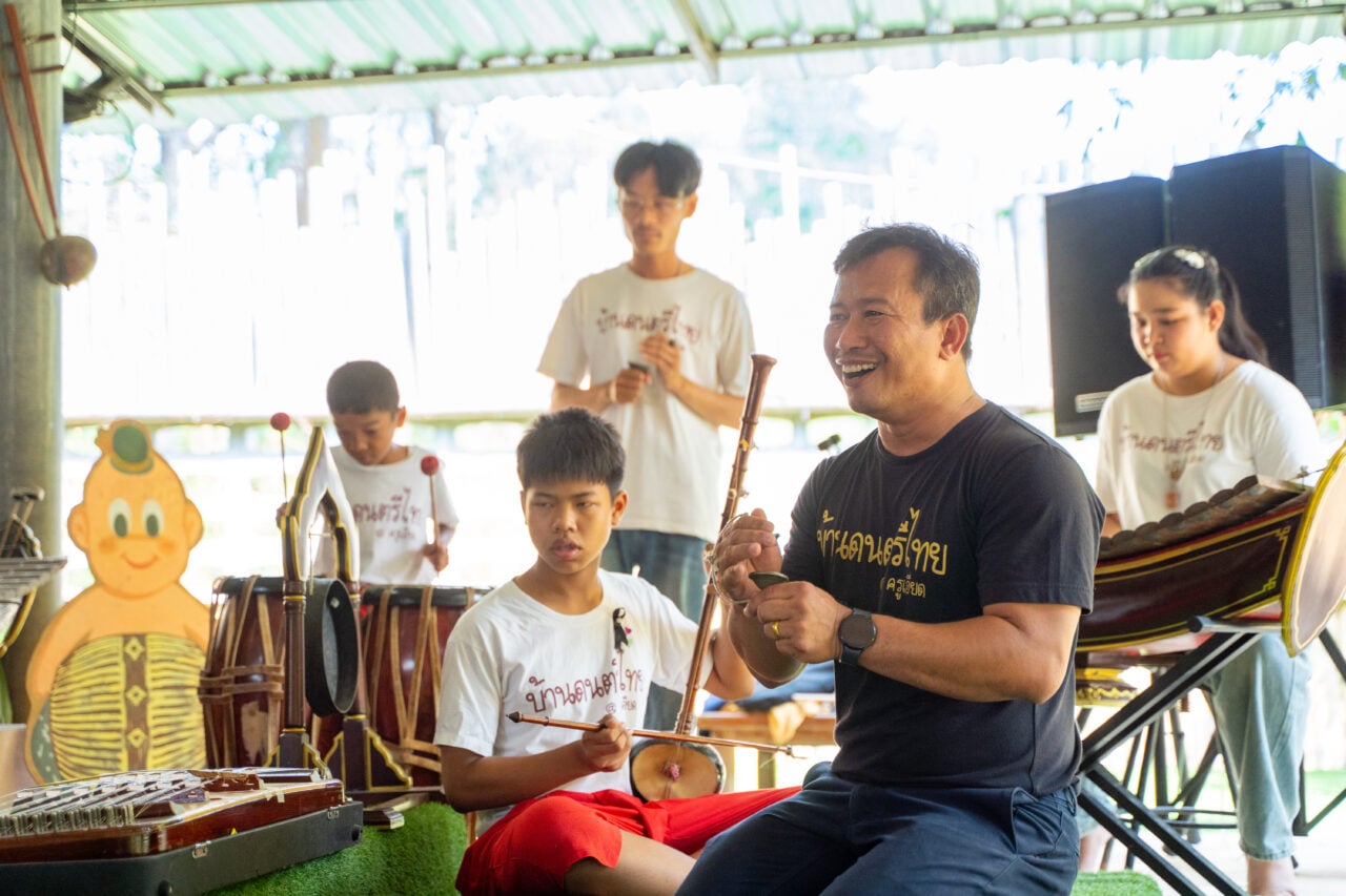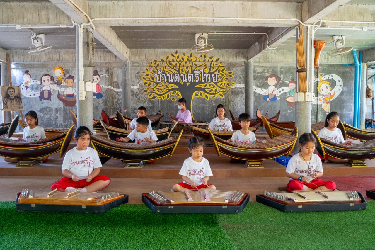 การสอนที่เน้นความสุข ให้เด็ก ๆ สนุกไปกับการเล่นดนตรี ไม่ใช่เพียงแค่การท่องจำทำนอง แต่คือการฝึกฝนวินัยและการทำงานร่วมกัน มีเครื่องดนตรีไทยหลากหลายประเภทให้เรียนรู้ ทั้งระนาด ฆ้องวง ซอ และเครื่องสายต่าง ๆ ท่ามกลางบรรยากาศอบอุ่น