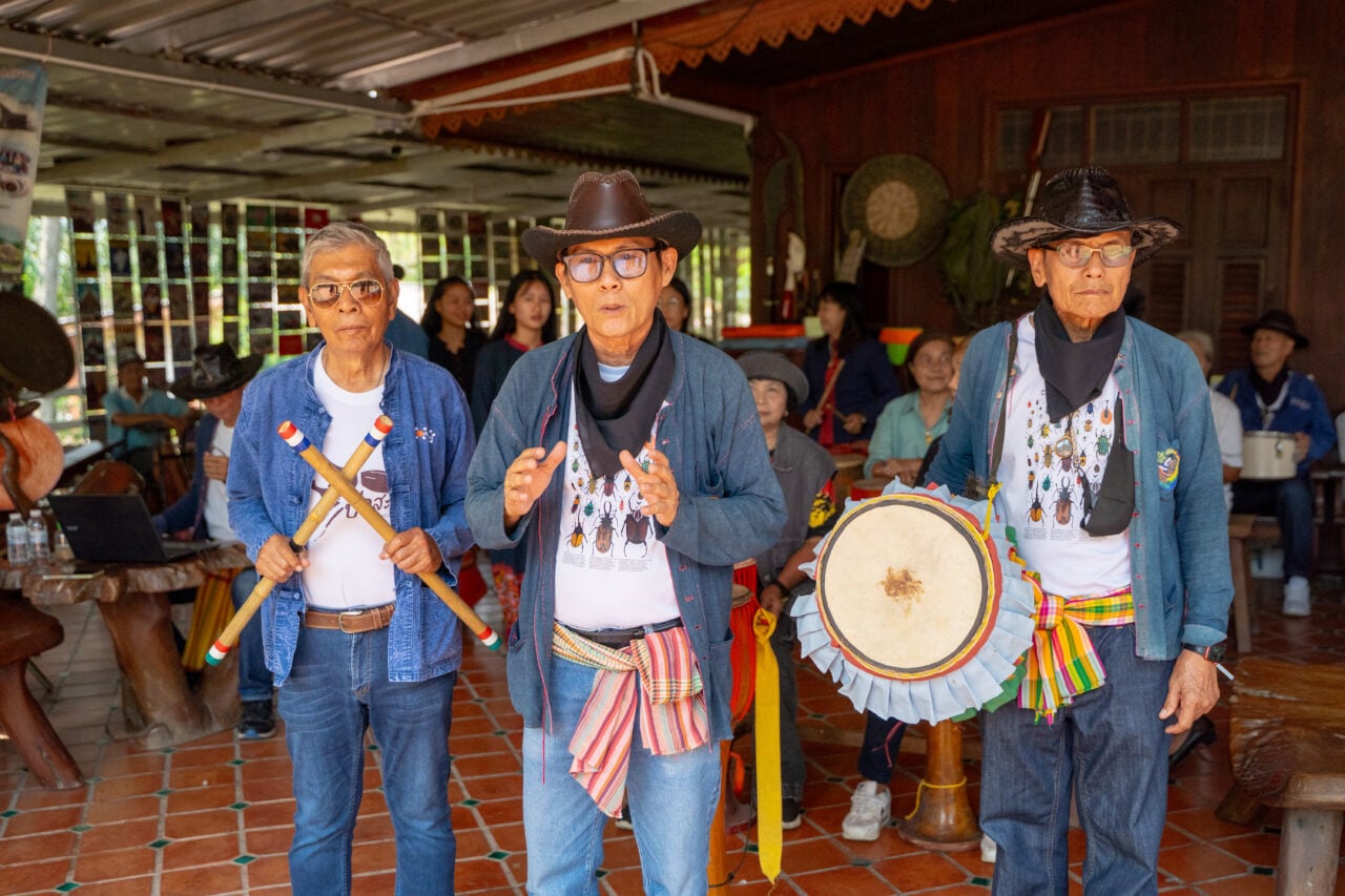ขณะที่ “ชุมชนท่องเที่ยว OTOP นวัตวิถี ชุมชนป่าสะแก” แห่งเดิมบางนางบวชก็มีบรรยากาศอบุอุ่นไม่น้อยหน้ากัน เพราะที่นี่คือแหล่งเรียนรู้ดนตรีพื้นบ้านที่สามารถ “สอนตีกลองยาวให้เป็นได้ภายใน 5 นาที” เป็นที่ว่าไม่ใช่แค่ตีให้มีเสียงดัง แต่สามารถตีไปพร้อม ๆ กันตั้งแต่ต้นจนจบเพลง โดยเฉพาะเพลงฉ่อยและเพลงอีแซว