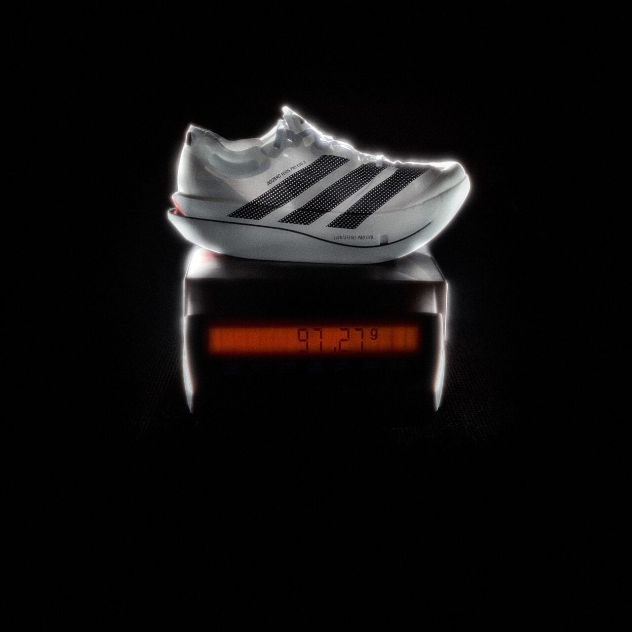 Adidas Adizero Adios Pro Evo 3 มีน้ำหนักเพียง 97.27 กรัม หรือ ไม่ถึงหนึ่งขีดด้วยซ้ำ โดยตัวรองเท้าเป็นโฟม Lightstrike Pro Evo เจเนอเรชันใหม่ ที่พัฒนาให้เบา และตอบสนองได้ดีที่สุดเท่าที่ Adidas เคยมีมา ด้วยน้ำหนักที่ลดลงเกือบ 50% จากรุ่นก่อน ผสานความหนาของพื้น 39 มม. ช่วยรองรับแรงกระแทก มอบแรงส่ง และคืนพลังงานสูงสุดในทุกก้าวของการวิ่ง