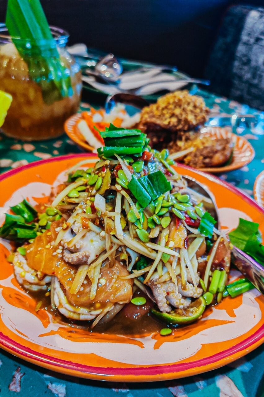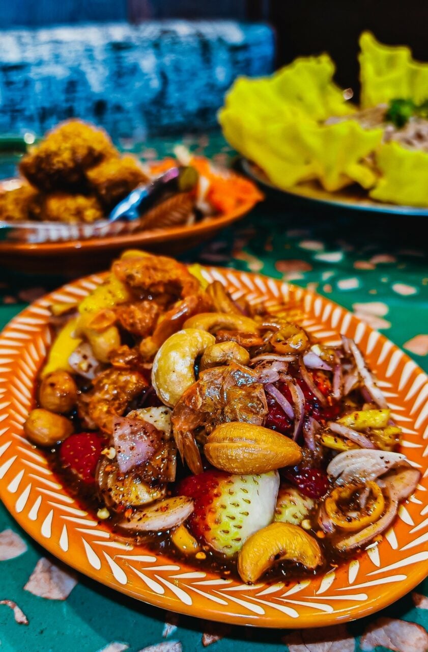 ตำสเลญวนกะปิปลาร้า – เปิดต่อมรับรสด้วยความแซ่บขั้นสุด จานนี้คือการรวมตัวของกะปิหอมๆ และปลาร้าแอนโชวี่นัวๆ คลุกเคล้าจนเข้าเนื้อ รสชาติจัดจ้านถึงใจ กินคู่กับผักเคียงสดๆ สไตล์เวียดนามคือเริ่ด!