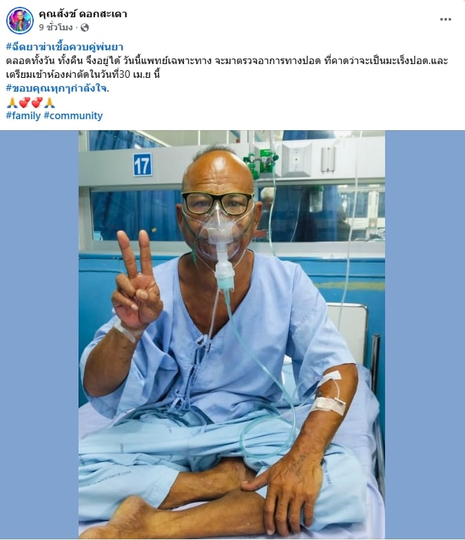 ทั้งนี้ ตลกชื่อดังยังได้กล่าวขอบคุณทุกความห่วงใยและกำลังใจจากแฟนๆ ที่ส่งมาให้ตนผ่านพ้นช่วงเวลาวิกฤตินี้ไปได้ด้วย