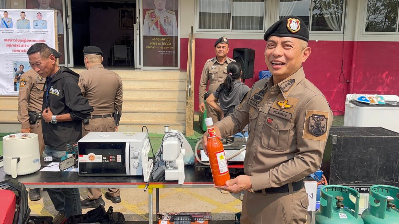 เมื่อวันที่ 27 เม.ย. ที่หน้า สภ.โพนพิสัย จ.หนองคาย พ.ต.อ.สุรกิจ ค้วนเครือ รอง ผบก.ภ.จว.หนองคาย, พ.ต.อ.วิทยากรณ์ ษมากรวทิต ผกก.สภ.โพนพิสัย, พ.ต.ท.ฉัตรชัย ใจไทย รอง ผกก.สส., พ.ต.ท.สิทธิรักษ์ สิริสิงห รอง ผกก.ป., พ.ต.ท.ประสาท สามารถกุล รองผกก.สอบสวน สภ.โพนพิสัย พร้อมเจ้าหน้าที่ชุดสืบสวน ได้ร่วมกันแถลงข่าวการจับกุม นายนาวิน (สงวนนามสกุล) อายุ 52 ปี ชาวอำเภอเมืองหนองคาย ผู้ต้องหาตามหมายจับศาลจังหวัดหนองคาย ข้อหาลักทรัพย์ พร้อมของกลางเป็นทรัพย์สินที่มีผู้เสียหายแจ้งความถูกขโมยไปมากกว่า 80 รายการ ซึ่งมีทั้ง พระเครื่อง โทรศัพท์มือถือ เครื่องใช้ไฟฟ้า เครื่องครัว เตาแก๊ส ข้าวสาร ไข่ไก่ ซอสพริก จักรเย็บผ้า เครื่องตัดหญ้า รถจักรยานยนต์ และอื่น ๆ อีกจำนวนมาก