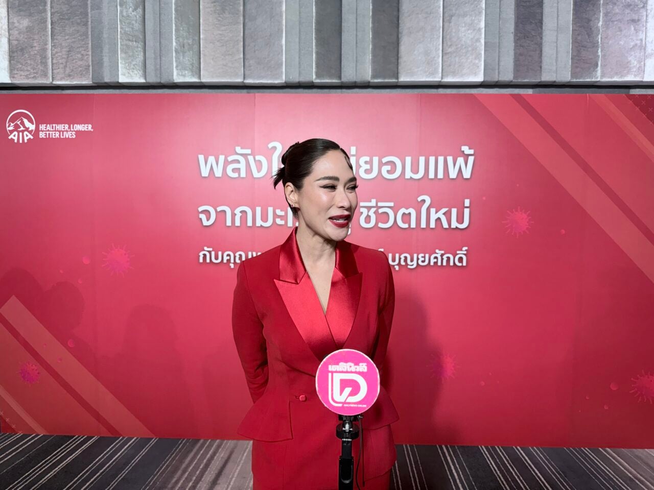 “อย่างที่ทราบดีพลอยป่วยเป็นมะเร็งเต้านมในระยะสอง ได้รับการรักษาเรียบร้อยแล้ว แต่วันนี้พี่พลอยมาจะมาพูดถึงว่าขั้นตอนหลังจากการรักษามันมีเรื่องของค่าใช้จ่ายสูงมาก พลอยก็โชคดีที่มี AIA มาดูแล เราซื้อประกันมาตั้งแต่อายุ 30 ต้นๆ มันเป็นอะไรที่โชคดีมากๆ ที่เราวางแผนการดูแลตัวเองตั้งแต่ ณ ตอนนั้น เราก็ไม่คิดว่าจะเกิดเรื่องกับเราแบบนี้ พลอยดีใจที่เราวางแผนมาตลอดเลย และตอนนี้คือสิ่งที่พลอยวางแผนมามันเห็นผลแล้ว ก็รู้สึกดีใจค่ะ