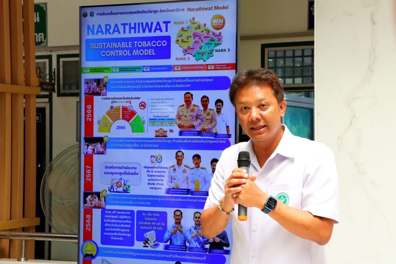 สำนักควบคุมปัจจัยเสี่ยงหลัก สำนักงานกองทุนสนับสนุนการสร้างเสริมสุขภาพ (สสส) ลงพื้นที่ จังหวัดนราธิวาส นายแพทย์กู้ศักดิ์ บำรุงเสนา นายแพทย์สาธารณสุขจังหวัดนราธิวาส ได้นำเสนอการดำเนินการของจังหวัด พบว่าในช่วงหลายปีที่ผ่านมา จังหวัดนราธิวาสได้พัฒนากลไกการทำงานด้านการควบคุมผลิตภัณฑ์ยาสูบอย่างต่อเนื่อง จนสามารถยกระดับสู่การเป็น “จังหวัดต้นแบบระดับประเทศ” พร้อมสร้างแนวทางการทำงานที่เรียกว่า “นราธิวาสโมเดล”การดำเนินการตามแนวทางดังกล่าวสอดคล้องกับหลักการสำคัญของ กฎบัตรออตตาวาเพื่อการส่งเสริมสุขภาพ ซึ่งเป็นกรอบแนวคิดสากลด้านการสร้างเสริมสุขภาพที่เน้นการดำเนินงานแบบบูรณาการ ทั้งด้านนโยบาย สังคม ชุมชน ระบบบริการสุขภาพ และ ทักษะบุคคล
