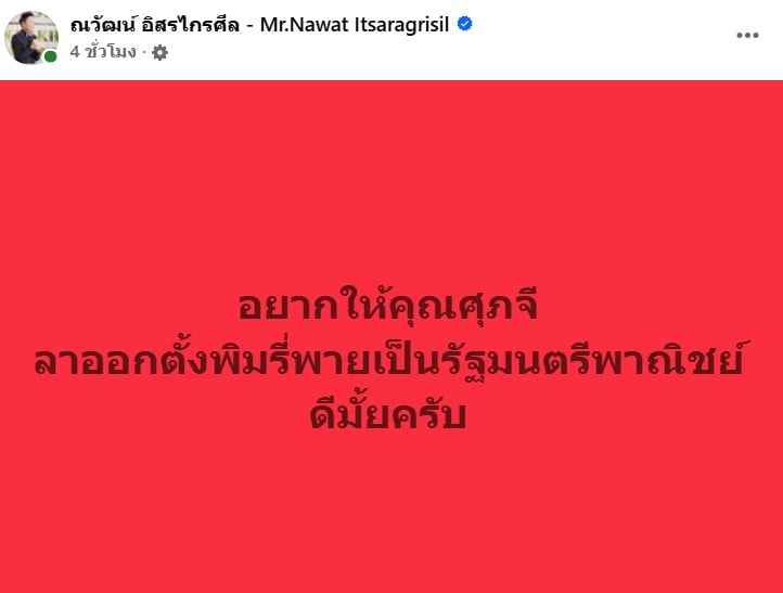 ก่อนจะทิ้งระเบิดลูกใหญ่ถึงคุณ “ศุภจี” ว่า “อยากให้คุณศุภจี ลาออกตั้งพิมรี่พายเป็นรัฐมนตรีพาณิชย์ดีมั้ยครับ”