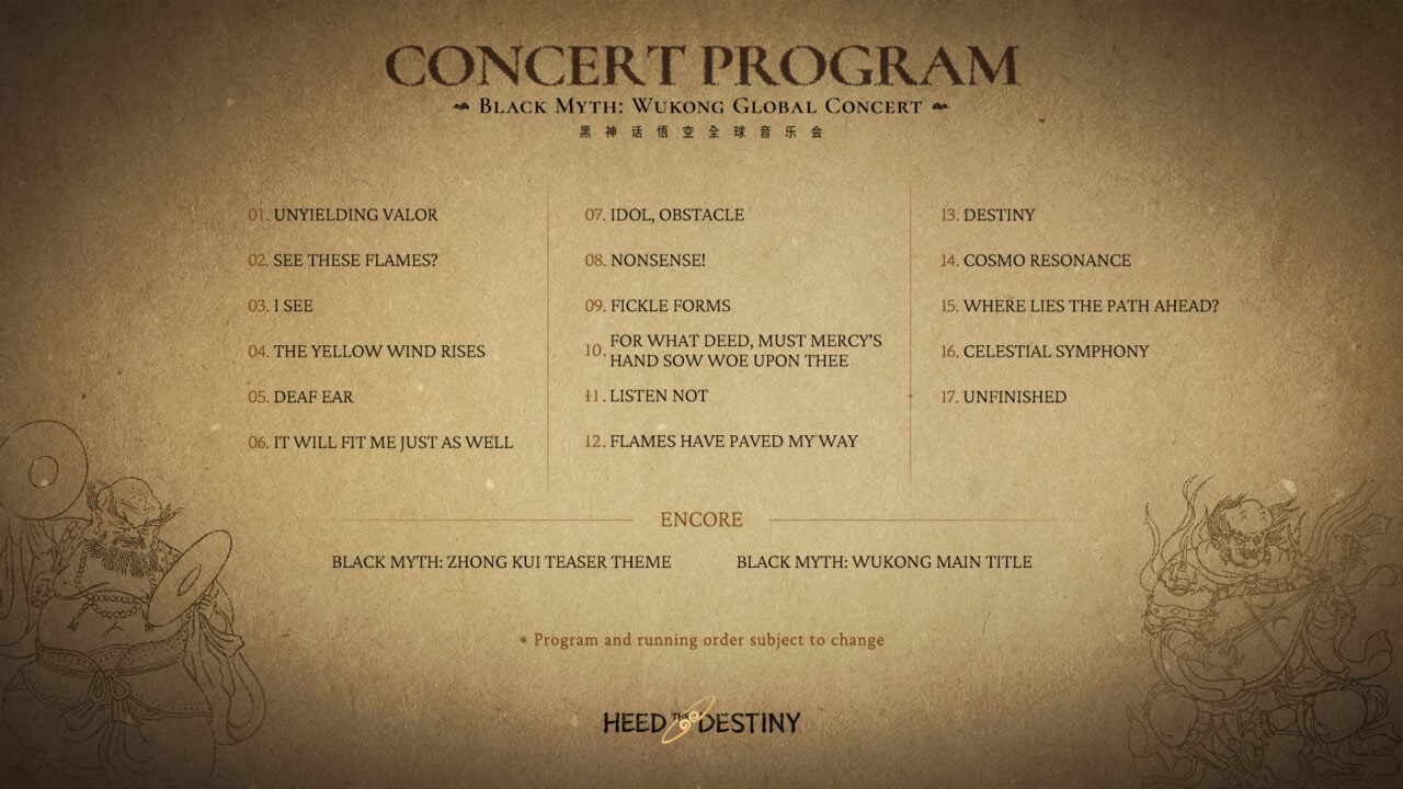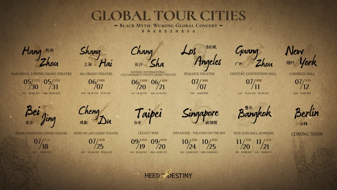 ภายในปีนี้ ทัวร์จะจัดขึ้นใน 12 เมืองทั่วโลก โดยรวบรวมวงดนตรีและนักร้องจากหลากหลายภูมิภาคมาร่วมแสดง พร้อมทำงานร่วมกันอย่างใกล้ชิดกับนักดนตรีพื้นบ้านจีน เพื่อถ่ายทอดบทเพลงประกอบและเพลงไอคอนิกของเกมให้มีชีวิตขึ้นมาอย่างสมจริง