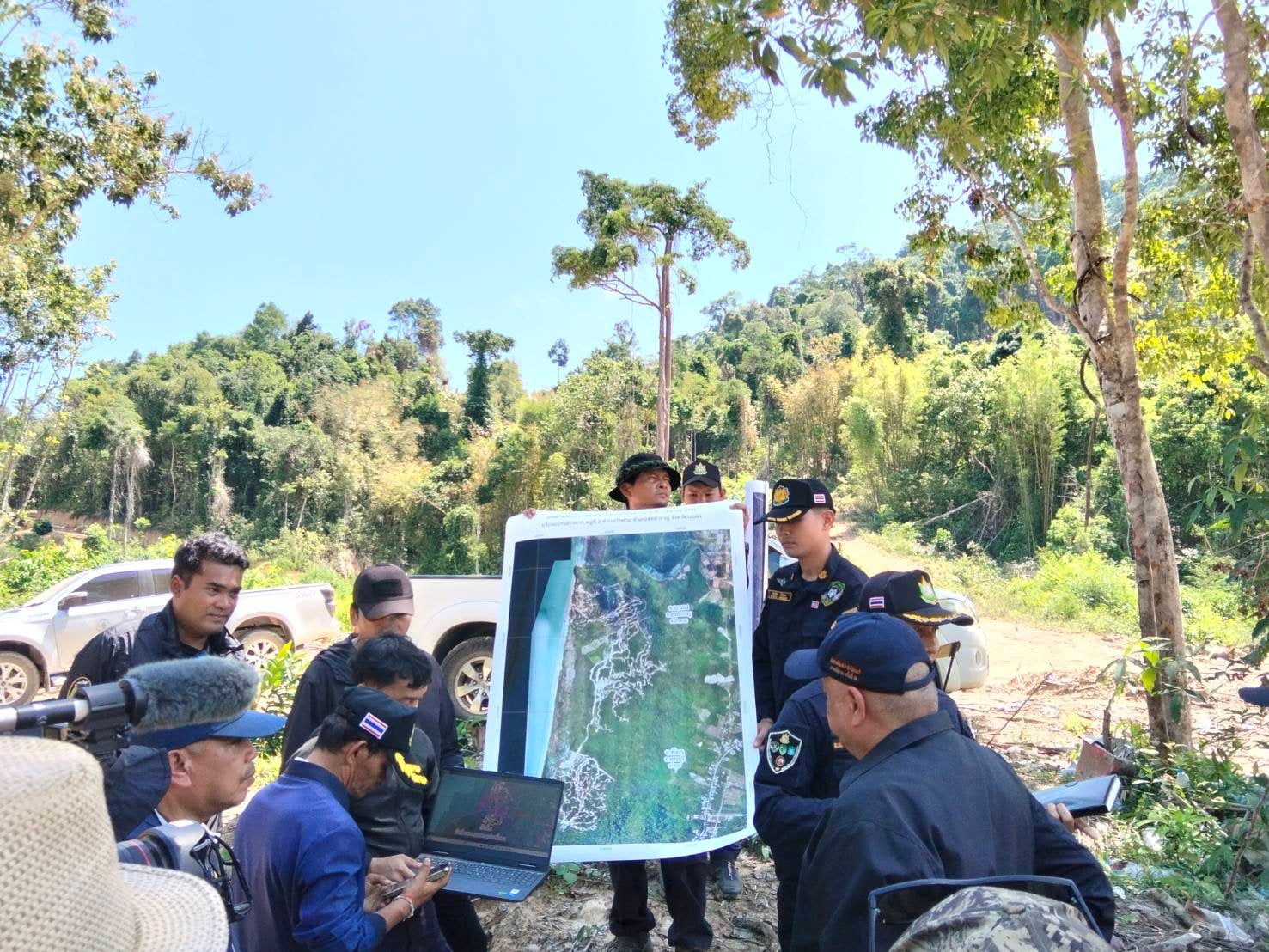 ขณะเดียวกัน สำนักที่ดิน จ.ระนอง ได้ส่งมอบแผนที่ระวางรูปแปลงและสารบบที่ดิน ให้กับชุดพยัคฆ์ไพร ซึ่งเจ้าหน้าที่ผู้เชี่ยวชาญได้เร่งทำการซ้อนระวางเพื่อตรวจสอบพื้นที่ระหว่างที่ดินที่มีเอกสารกับพื้นที่ป่า อย่างไรก็ตาม มีรายงานการตรวจสอบเบื้องต้น พบว่าจุดที่มีการตรวจยึดกองไม้บางส่วนอยู่ในพื้นที่ป่า มีเนื้อที่ประมาณ 100 ไร่ ทางเจ้าหน้าที่ชุดพยัคฆ์ไพร ได้เข้าทำการบันทึกที่เกิดเหตุ ตรวจวัดพื้นที่ เพื่อรวบรวมหลักฐาน แจ้งความดำเนินคดีกับผู้ก่อเหตุในข้อหาก่นสร้าง แผ้วถาง หรือเผาป่า หรือทำลายป่า เพื่อเข้ายึดถือครอบครองป่าเพื่อตนเองหรือผู้อื่น ตามความผิด มาตรา 54, 55 และ 72 ตรี พ.ร.บ.ป่าไม้