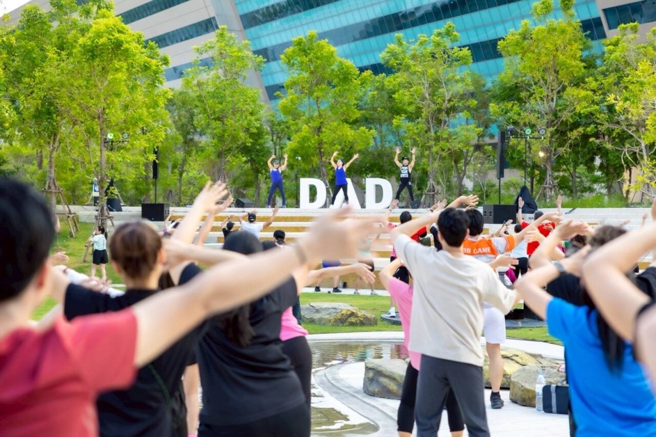 เมื่อวันที่ 28 เม.ย. บริษัท ธนารักษ์พัฒนาสินทรัพย์ จำกัด หรือ DAD Asset Development จัดกิจกรรม “DAD AEROBIC MOVE BEAT BURN ปล่อยพลังหลังเลิกงาน อัปเลเวลร่างกาย ไปกับจังหวะที่ใช่” ณ บริเวณสวนหน้าอาคารรศาสนภักดี (อาคาร B) ศูนย์ราชการเฉลิมพระเกียรติฯ โดยมี ดร.ธีธัช สุขสะอาด รักษาการแทนกรรมการผู้จัดการ เป็นประธานเปิดงาน ท่ามกลางผู้บริหาร เจ้าหน้าที่ ประชาชน และสื่อมวลชน ที่เข้าร่วมกิจกรรมอย่างคับคั่ง