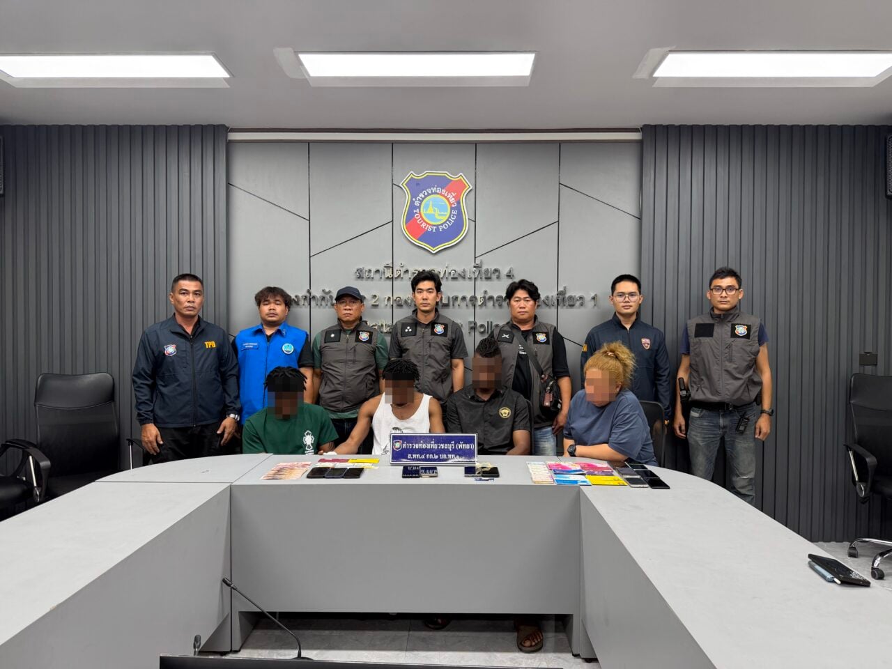 เมื่อวันที่ 28 เม.ย.2569 พ.ต.ท.ปราบดา สุขสุนทรีย์ ส.ทท.4 กก.2 บก.ทท.1 ร.ต.อ.อัษฎา จารุสมบัติ รอง สว.ส.ทท4 กก.2 บก.ทท.1 ร.ต.อ.พยอม หอมวัฒนวงศ์ รอง สว.กก.สส.1 บก.สส.ภ.2 ร.ต.ท.ธีรฉัตร เล็บนาค รอง สว.กก.สส.1 บก.สส.ภ.2 นำกำลังไปจับกุมผู้กระทำผิดพัวพันเกี่ยวข้องกับบัญชีม้า รายแรกคือ น.ส.พัชรินทร์ (สงวนนามสกุล) อายุ 41 ปี ชาวจ.ชลบุรี และชาวต่างประเทศ สัญชาติ ไนจีเรีย อีก 3 ราย โดยสามารถจับกุมได้ที่โรงแรมแห่งหนึ่ง ใจกลางเมืองพัทยา ต.หนองปรือ อ.บางละมุง จ.ชลบุรี พร้อมของกลางโทรศัพท์มือถือจำนวน 12 เครื่อง สมุดบัญชีธนาคาร 12 บัญชี