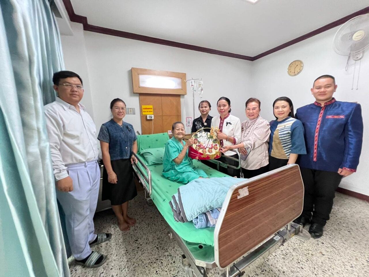 เมื่อวันที่ 29 เม.ย. ที่ตึกพิเศษชั้น 3 โรงพยาบาลกาฬสินธุ์ นายสุวรรธณ์ เข็มธนเพ็ชร ผู้ว่าราชการ จ.กาฬสินธุ์ พร้อมด้วย นพ.สมชาย ชมภูคำ นายแพทย์สาธารณสุข จ.กาฬสินธุ์ พญ.จารุพรรณ มโนสิทธิศักดิ์ ผอ.โรงพยาบาลกาฬสินธุ์ นางนภสร พระยาลอ วัฒนธรรม จ.กาฬสินธุ์ นำกระเช้าสุขภาพ เข้าเยี่ยมแม่คำสอน สระทอง อายุ 87 ปี ศิลปินแห่งชาติ ปี 2559 ด้านประณีตศิลป์ -ทอผ้า “ผ้าไหมวิจิตรแพรวา” หลังเข้าพักรักษาที่โรงพยาบาลกาฬสินธุ์ เมื่อวานนี้ (28 เม.ย.) ด้วยอาการปวดท้องอย่างรุนแรง โดยมีคณะผู้บริหาร แพทย์ พยาบาล บุคลากร รพ.กาฬสินธุ์ ให้การต้อนรับและอัพเดทอาการ ที่พบว่าอาการทั่วไปดีขึ้น และคาดว่าอีก 2-3วันก็สามารถออกจากโรงพยาบาลได้แล้ว