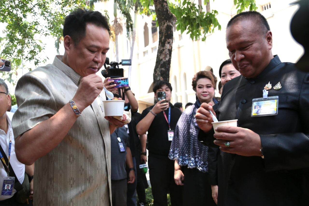 นายอนุทิน ชาญวีรกูล นายกรัฐมนตรี และ รมว.มหาดไทย ได้ลงจากตึกไทยคู่ฟ้ามาที่ห้องทำงานสื่อมวลชนที่มีชื่อเล่นว่ารังนกกระจอก พร้อมกับ พล.อ.เกรียงไกร ศรีรักษ์ รองประธานวุฒิสภา คนที่ 1 ในฐานะอดีตแม่ทัพภาคที่ 4 โดยนายกฯ เดินมาทักทายสื่อมวลชน ก่อนจะชิมขนมไทย และเดินไปตักไอติมกะทิใส่เครื่องด้วยตัวเองพร้อมระบุว่า “แปะก๊วยช่วยความจํา พ่อบังคับให้กินทุกเช้า มีวันหนึ่ง นั่งกินข้าวกับพี่เกรียง พี่เกรียงบอกว่าต้องกิน พี่หนูต้องกินแปะก๊วยทุกวัน ผมกินทุกวันความจําผมดี แล้วพี่เกรียง ก็หันไปถามภรรยาตัวเองว่าเมื่อเช้าพี่กินแล้วหรือยังน้อง” สร้างเสียงหัวเราะให้บรรดาทีมโฆษกและสื่อมวลชน