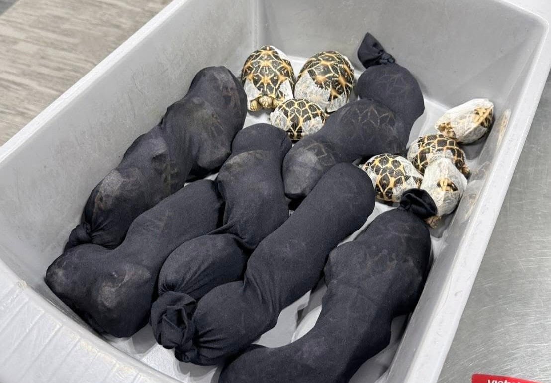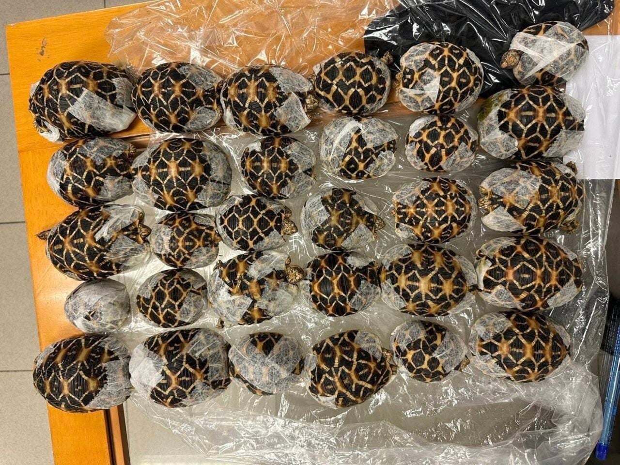 จากการตรวจสอบพบ หญิงสัญชาติไต้หวัน อายุ 19 ปี ผู้โดยสารสายการบินเวียตเจ็ทแอร์ เที่ยวบินที่ VZ568 ปลายทางกรุงไทเป มีท่าทีพิรุธบริเวณลำตัว เมื่อทำการขอตรวจค้นโดยละเอียด เจ้าหน้าที่พบสัตว์ป่าของกลางซุกซ่อนอยู่ตามร่างกาย โดยผู้ต้องหาใช้ “วิธีการรัดสัตว์ด้วยกระดาษกาว” เพื่อจำกัดการเคลื่อนไหว บรรจุใส่ถุงผ้าแล้วแปะติดไว้กับตัวเพื่อหลบเลี่ยงการตรวจจับของเจ้าหน้าที่ จากการตรวจสอบของกลางพบว่าเป็น “เต่าดาวอินเดีย” (Indian Star Tortoise) สัตว์ป่าในบัญชีควบคุม ซึ่งมีมูลค่าสูงในตลาดมืด รวมทั้งสิ้น 30 รายการ แบ่งเป็น เต่าดาวอินเดียที่มีชีวิต 29 ตัว และซากเต่าดาวอินเดีย 1 ซาก