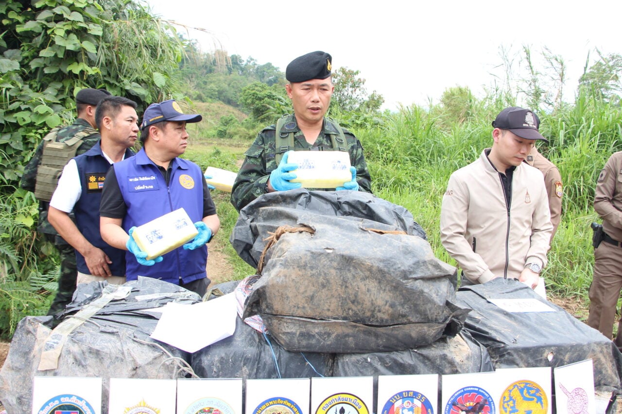 เมื่อวันที่ 29 เม.ย. พลตรี สาธิต ไวยนนท์ ผู้บัญชาการกองกำลังผาเมือง มอบให้ พันเอก สุพรรณ ร้อยพุทธ ผู้บังคับหน่วยเฉพาะกิจทัพเจ้าตาก กองกำลังผาเมือง อัยการจังหวัดเชียงราย ตำรวจภูธร สภ.แม่ฟ้าหลวง เจ้าหน้าที่พิสูจน์หลักฐาน ฝ่ายปกครอง และหน่วยงานที่เกี่ยวข้อง ร่วมกันตรวจสอบยาเสพติด จำนวน 12 กระสอบ และร่างผู้เสียชีวิตจากการปะทะจำนวน 2 ศพ บริเวณช่องทางธรรมชาติ บ้านปางมะหัน หมู่ 8 ต.เทอดไทย อ.แม่ฟ้าหลวง จ.เชียงราย