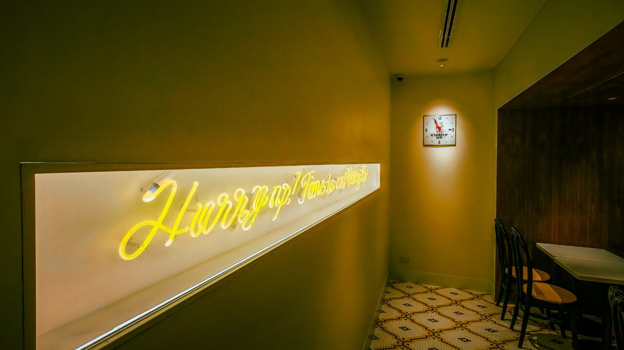 Vibes ของร้านดึงดูดสายตามาก ดูทันสมัย แต่ก็ลึกลับ น่าค้นหา อาจเพราะทางเข้าที่เหมือนเดินลอดอุโมงค์สีเหลืองเข้าไป ร้านเน้นโทนสีเหลืองและขาว ถ่ายรูปสวยทุกมุม