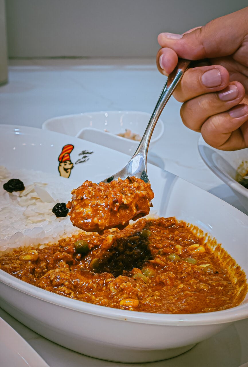 - Chicken Keema Curry: ใช้เนื้อไก่สับเคี่ยวจนเข้มข้น หอมกลิ่นเครื่องเทศเตะจมูก ผสานความหวานธรรมชาติจากผักที่เคี่ยวจนงวด กลมกล่อมทุกคำ