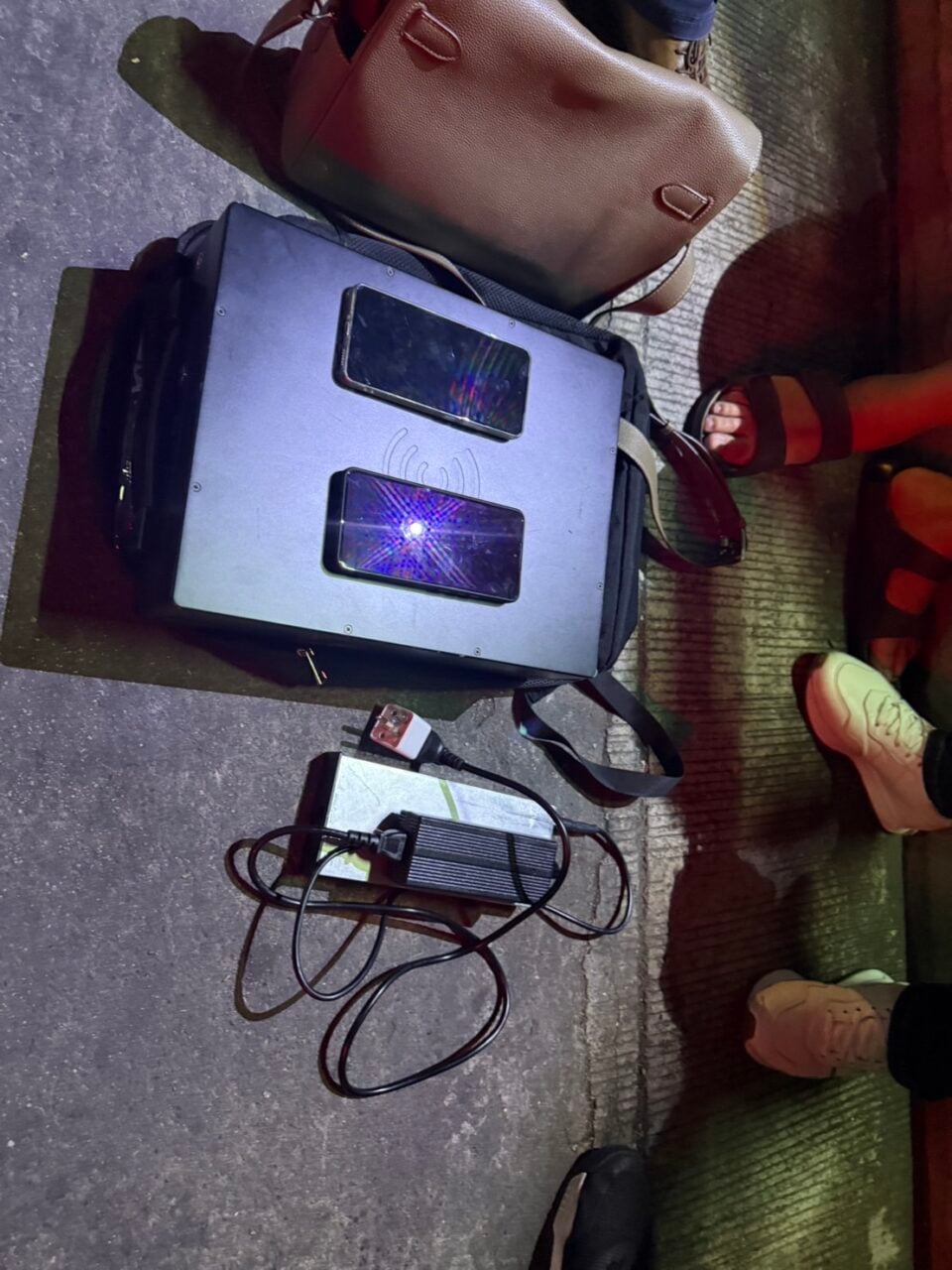 กระทั่งเมื่อคืนวันที่ 28 เม.ย. เวลาประมาณ 21.00 น. เจ้าหน้าที่ตรวจพบรถยนต์ต้องสงสัยยี่ห้อ BYD สีขาว ติดตั้งอุปกรณ์ต้องสงสัยและขับตระเวนในพื้นที่ ก่อนเข้าตรวจสกัดได้บริเวณตลาดดาวคะนอง แขวงดาวคะนอง เขตธนบุรี กรุงเทพฯ ภายในรถพบชายสัญชาติจีน 2 ราย คือ นายเจียง จ้าวซือ อายุ 46 ปี และนายเฉิน อายุ 64 ปี พร้อมของกลางเครื่อง False Base Station จำนวน 1 เครื่อง และโทรศัพท์มือถืออีก 2 เครื่อง