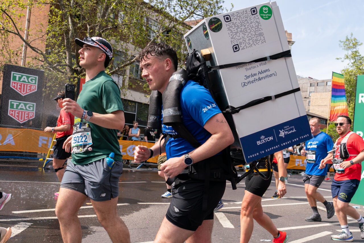 การแข่งขัน “ลอนดอน มาราธอน” ที่สุดสัปดาห์ที่ผ่านมา นอกจากจะมีมนุษย์คนแรกที่วิ่งเข้าเส้นชัยในการแข่งขันมาราธอนด้วยเวลาต่ำกว่า 2 ชั่วโมงแล้ว ยังมีมนุษย์ที่สร้างความฮือฮา ด้วยการแบกตู้เย็นลงวิ่งด้วย