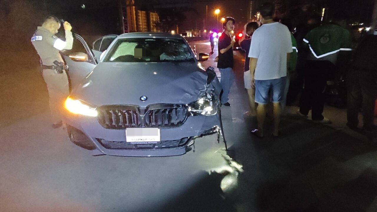 ที่เกิดเหตุพบผู้เสียชีวิตทราบชื่อนายอลงกรณ์ บางกระ อายุ 27 ปี สภาพนอนเสียชีวิตอยู่ข้างถนนสวมเสื้อใลน์แมน ห่างออกไปประมาณ10 เมตรพบรถจักรยานยนต์ ฮอนด้า สีเทาไม่ติดแผ่นป้ายทะเบียนด้านหลังถูกชนพังยับเยิน ใกล้กับพบรถเก๋งยี่ห้อBMWสีเทา ทะเบียน กรุงเทพมหานคร บริเวณหน้ารถข้างซ้ายมีรอยเฉี่ยวชนพังยับเยินและกระจกหน้ารถแตก โดยมีนายภูมินท์ (ขอสงวนนามสกุล) อายุ 22 ปี เป็นคนขับยืนรอเจ้าหน้าที่ตำรวจอยู่ในที่เกิดเหตุ