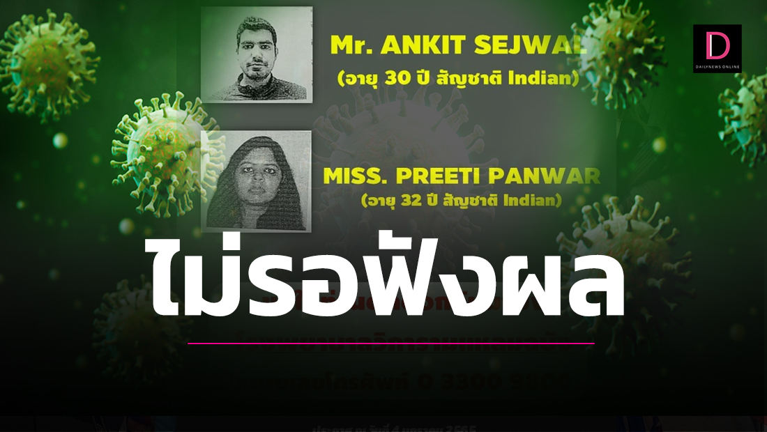 เมื่อวันที่ 4 ม.ค. สำนักงานสาธารณสุขจังหวัดชลบุรี สสจ.ชลบุรี ได้โพสต์ข้อความระบุว่า ประกาศ บุคคลใดที่รู้จัก‼️ Mr. ANKIT SEJWAL (อายุ 30 ปี สัญชาติ Indian) MISS. PREETI PANWAR (อายุ 32 ปี สัญชาติ Indian) ขอให้ท่านติดต่อกลับมายัง โรงพยาบาลวิภารามแหลมฉบัง หมายเลขโทรศัพท์ 0-3300-9800