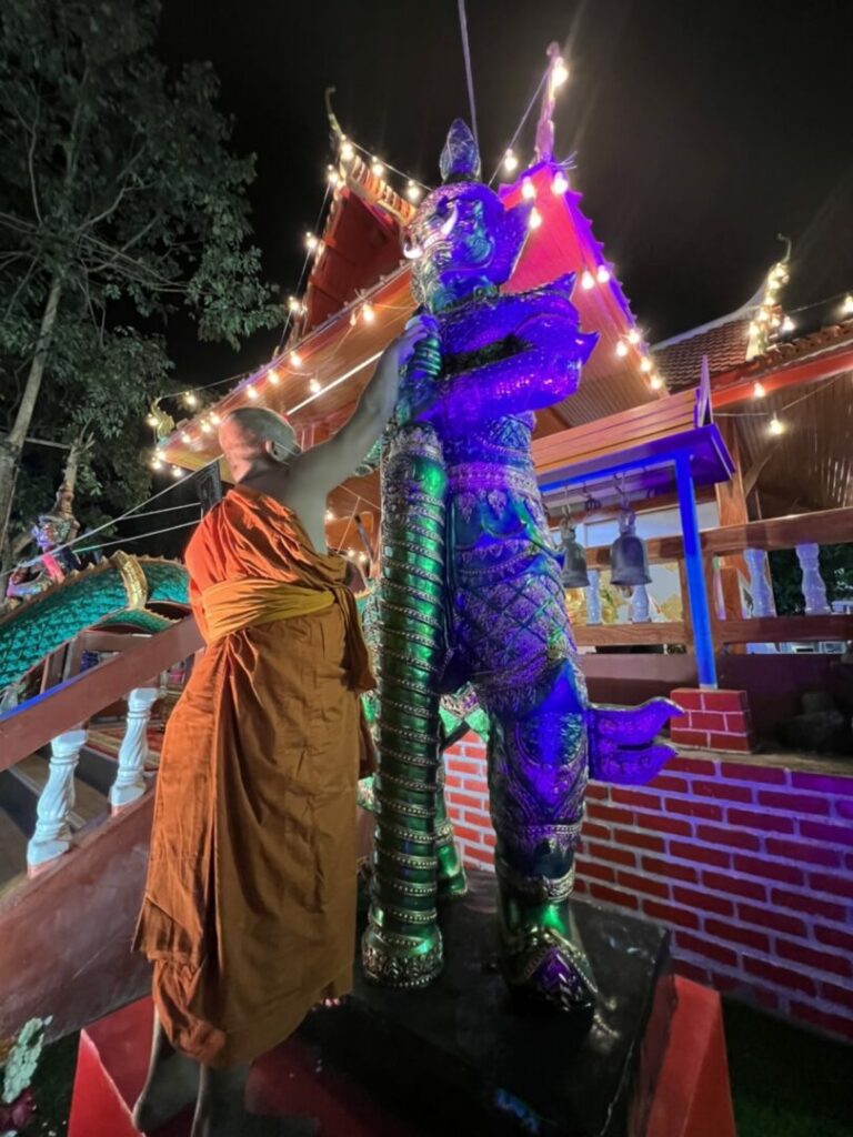 ที่วัดเกาะแก้วเกษฎาราม อ.นครหลวง จ.พระนครศรีอยุธยา พระครูปลัดทวีศักดิ์ สนตกาโม เจ้าอาอวาสวัดเกาะแก้วเกษฎาราม ประกอบพิธีพุทธเทวาภิเษก องค์ท้าวเวสสุวรรณ ขนาดความสูง 3 เมตร 30 เซนติเมตร 2 องค์ ประดิษฐานไว้ที่บริเวณวิหารหลวงพ่อพุทธเมตตา ริมแม่น้ำป่าสัก โดยมี พระครูพิสิฐสรภาณ (พระอาจารย์หยง ศิษย์เอก หลวงพ่อพูน วัดบ้านแพน) พระครูใบฎีกาไพโรจน์ ภทฺทิโย (วัดป้อมแก้ว ศิษย์เอก หลวงพ่อเพิ่ม) พระครูพิสิฐสรภาณ หรือพระ นั่งปรกอธิฐานจิต คณะพระสงฆ์ร่วมสวดเจริญพระพุทธมนต์