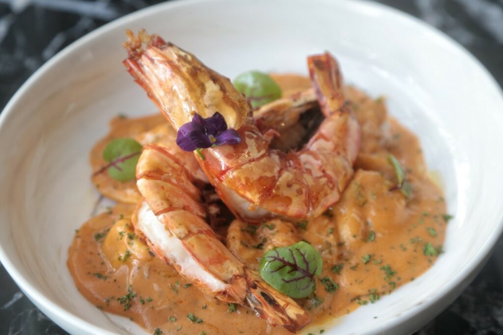 สำหรับเมนูแนะนำเชฟนายเลือกจานซิกเนเจอร์ ราวิโอลี ครีมชีส กุ้งลายเสือ (Cream Cheese Tiger Prawn Ravioli with Bisgue) มานำเสนอพร้อมกับให้เชฟมือดีอย่าง “เชฟกิจษ์มาวิ สุริยมิตรเสถียร” ทำการรังสรรค์ วัตถุดิบและส่วนผสม คร่าวๆ มีดังนี้ แป้งดับเบิลโอ, ไข่แดง, น้ำเปล่า, กุ้งลายเสือ, ครีมชีส, เลมอน, ชีสพามิเซ่โน่ และพริกไทย เป็นต้น เคล็ดลับการเลือกวัตถุดิบ เชฟนายเผยว่าต้องหาไข่สด มิฉะนั้นสีของเส้นจะไม่สวย ขณะเดียวกับลองใช้กุ้งลายเสือของจังหวัดสุราษฎร์ธานี แทนล็อบสเตอร์ ซึ่งผลลัพธ์ให้รสชาติหวานและอร่อย อีกทั้งยังทำให้ราคาเข้าถึงง่ายขึ้น หากใครทำที่บ้านดัดแปลงเป็นกุ้งแชบ๊วยก็สามารถทำได้