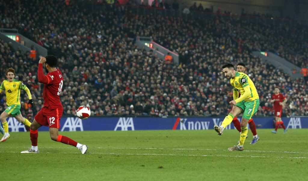 เกมนี้ “หงส์แดง” ทะยานออกนำก่อน 2-0 ในครึ่งแรกจากการเหมาเบิ้ลของ ทาคูมิ มินามิโนะ หัวหอกทีมชาติญี่ปุ่น ในนาทีที่ 27 กับ 39 ครึ่งหลัง นอริช ฮึดสู้ และตีไข่แตกไล่ขึ้นมาเป็น 1-2 ได้จาก ลูคัส รุปป์ ในนาทีที่ 77 ทว่าสุดท้ายก็ทำได้แค่นั้นจบเกม ลิเวอร์พูล จึงเปิดบ้านเฉือน “ขมิ้นเหลืองอ่อน” หวุดหวิด 2-1.