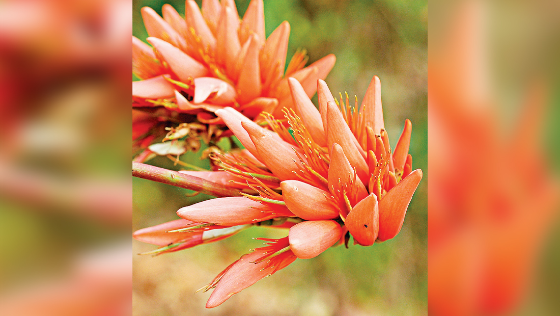 ทองแค ไม้ยืนต้น ช่อดอกอัดแน่น สีแดงสด สรรพคุณเปลือกต้น ห่อด้วยใบพลับพลึงทำลูกประคบ ใช้แก้บวม