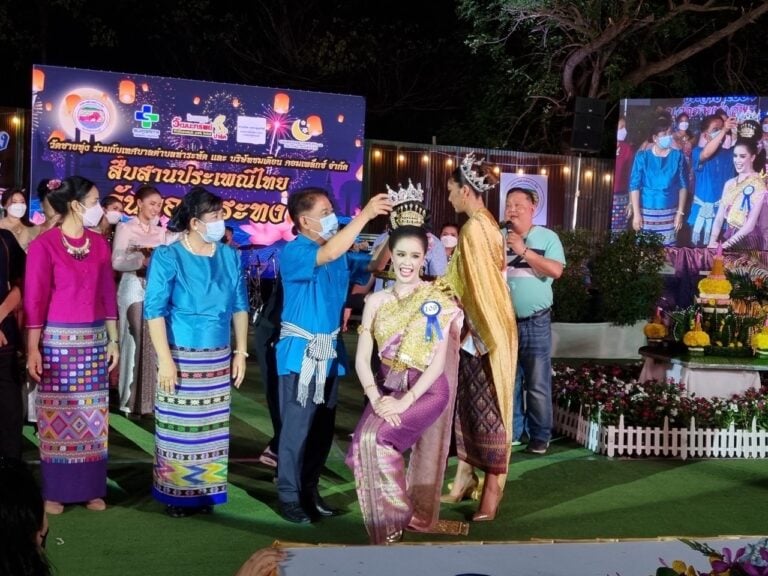 “น้องพลอย” สาวงามจากรั้วมหาวิทยาลัยธรรมศาสตร์ คว้าตำแหน่งนางนพมาศ งานสืบสานประเพณีลอยกระทง วัดชายทุ่ง จ.สุพรรณบุรี