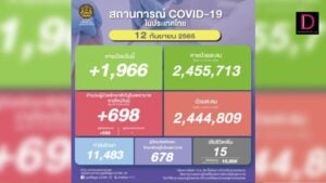 ยอด ‘โควิด-19’ วันนี้ พบเสียชีวิตเพิ่มอีก 15 ราย ขณะที่มีจำนวนผู้ป่วยรักษาตัวใน รพ.รายใหม่ มีสัญญาณดี เหลือ 698 ราย กำลังรักษา 11,483 ราย