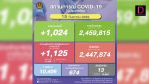 ยอด ‘โควิด-19’ วันนี้ พบเสียชีวิตเพิ่มอีก 22 ราย ขณะที่มีจำนวนผู้ป่วยรักษาตัวใน รพ.รายใหม่ 1,062 ราย กำลังรักษา 14,495 ราย