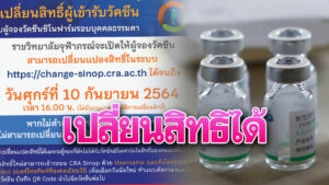 “ราชวิทยาลัยจุฬาภรณ์” แจ้งขั้นตอนผู้ที่ต้องการเปลี่ยนสิทธิฉีดวัคซีน “ซิโนฟาร์ม” รอบบุคคลธรรมดา สามารถทำได้ภายในวันที่ 10 ก.ย.นี้