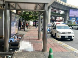 โควิดคร่าชีวิตหญิงไร้บ้าน ฟุบดับคาป้ายรถประจำทาง กลางอนุสาวรีย์ชัยฯ