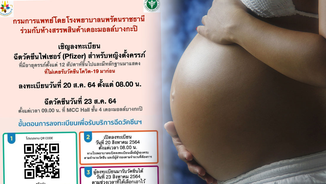 เพจ “กรมการแพทย์” โพสต์ประกาศเปิดจองฉีดวัคซีนโควิด-19 “ไฟเซอร์” สำหรับหญิงตั้งครรภ์อายุครรภ์ตั้งแต่ 12 สัปดาห์ขึ้นไป ลงทะเบียน 20 ส.ค. เวลา 08.00 น. ฉีด 23 ส.ค. เวลา 09.00 น.