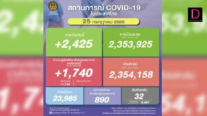 ยอด ‘โควิด-19’ วันนี้ พบเสียชีวิตเพิ่มอีก 32 ราย ขณะที่มีจำนวนผู้ป่วยรักษาตัวใน รพ.รายใหม่ 1,740 ราย กำลังรักษา 23,985 ราย