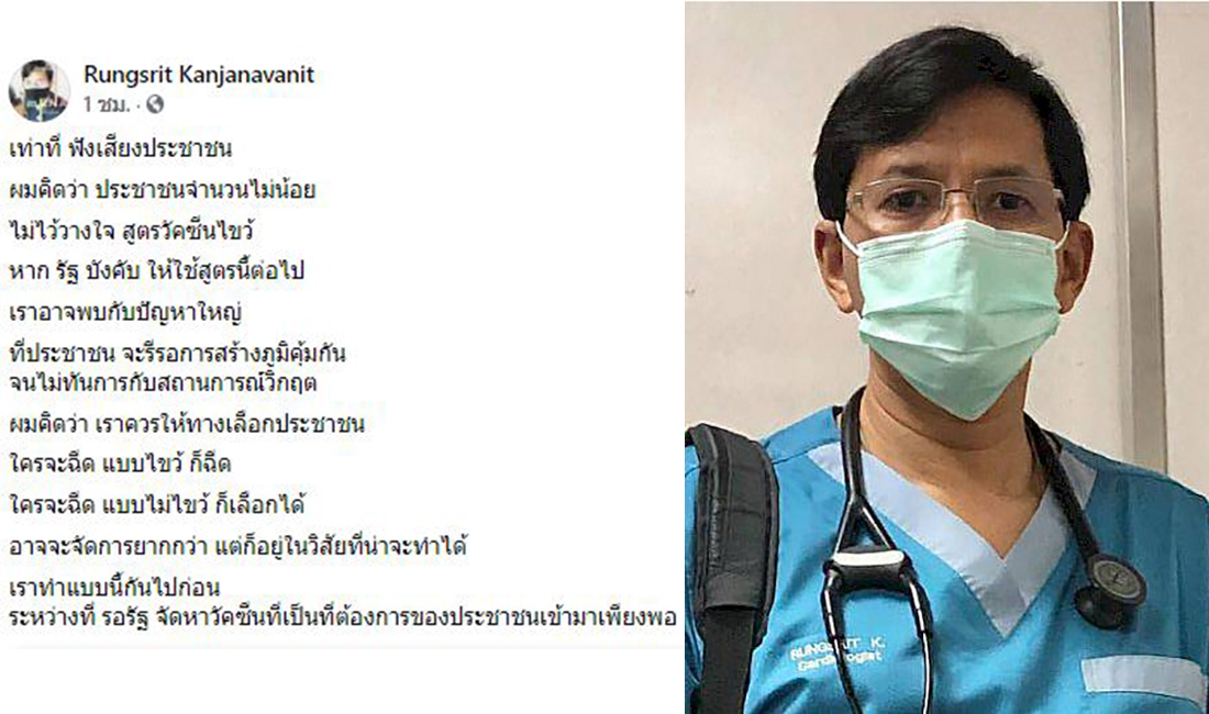 นพ.รังสฤษฎ์ กาญจนะวณิชย์ อาจารย์แพทย์โรคหัวใจ มช. ชี้ประชาชนไม่น้อยไม่ไว้ใจสูตรฉีดวัคซีนไขว้ หากบังคับอาจทำชาวบ้านรอ จนอาจพบปัญหาใหญ่ แนะควรให้เลือกได้ใครอยากฉีดสูตรไหน