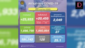 โควิดติดเชื้อใหม่พุ่ง 20,455 ราย หายป่วย 25,933 ราย เสียชีวิต 128 ราย