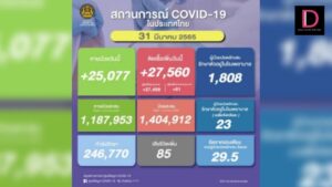 ยอด ‘โควิด-19’ วันนี้ พบเสียชีวิตเพิ่มอีก 85 ราย ขณะที่พบผู้ติดเชื้อใหม่เพิ่มอีก 27,560 ราย กำลังรักษา 246,770 ราย