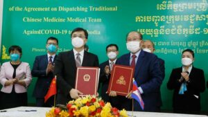 รัฐบาลจีนจะมอบยาสมุนไพรแผนโบราณ ให้กัมพูชาใช้รักษาผู้ป่วยติดเชื้อโควิด-19 เพิ่มเติมจากวัคซีนยาแผนปัจจุบัน โดยจะส่งทีมแพทย์ผู้เชี่ยวชาญตำรับยาโบราณจีน มาคอยให้คำแนะนำด้วย