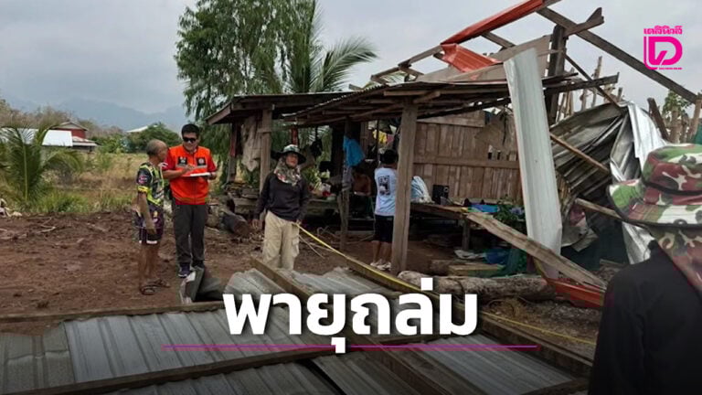 พายุฤดูร้อนถล่มถ้ำวัวแดงหลังคาปลิวว่อน 9 หลัง ข้าวหอมมะลิเปียกน้ำนับ 10 ตัน