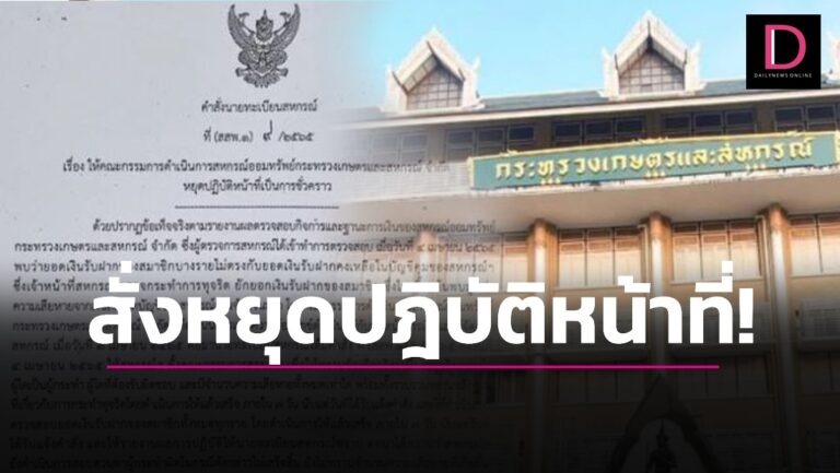 หยุดปฎิบัติหน้าที่! สั่งกก.สหกรณ์ออมทรัพย์ ก.เกษตรฯ หยุดปฏิบัติหน้าที่