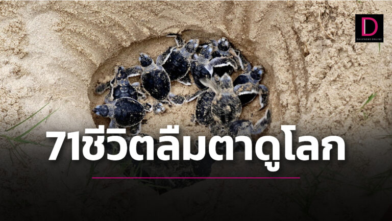 ภาพหาดูยาก วินาทีกำเนิดลูกเต่าทะเล ผุดใต้พื้นทรายลืมตาดูโลก 71 ชีวิต